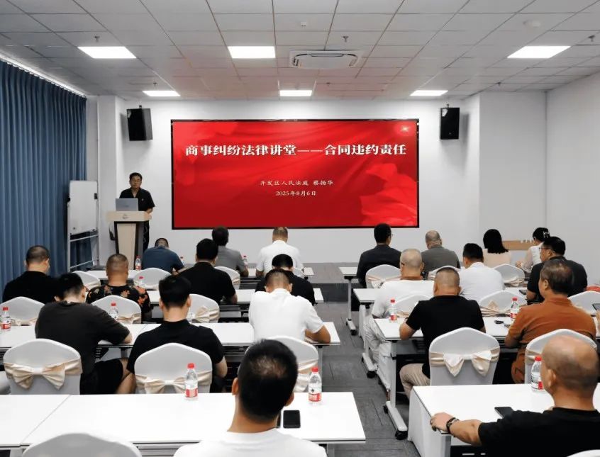 在“法治护航”环节,开发区人民法庭向企业赠送商事法律实务书籍,法庭法官围绕“商事纠纷合同违约责任”展开讲解,通过案例剖析助力企业提升法律风险防范能力。座谈互动中,政企双方深入交流企业经营中的法律实务问题。