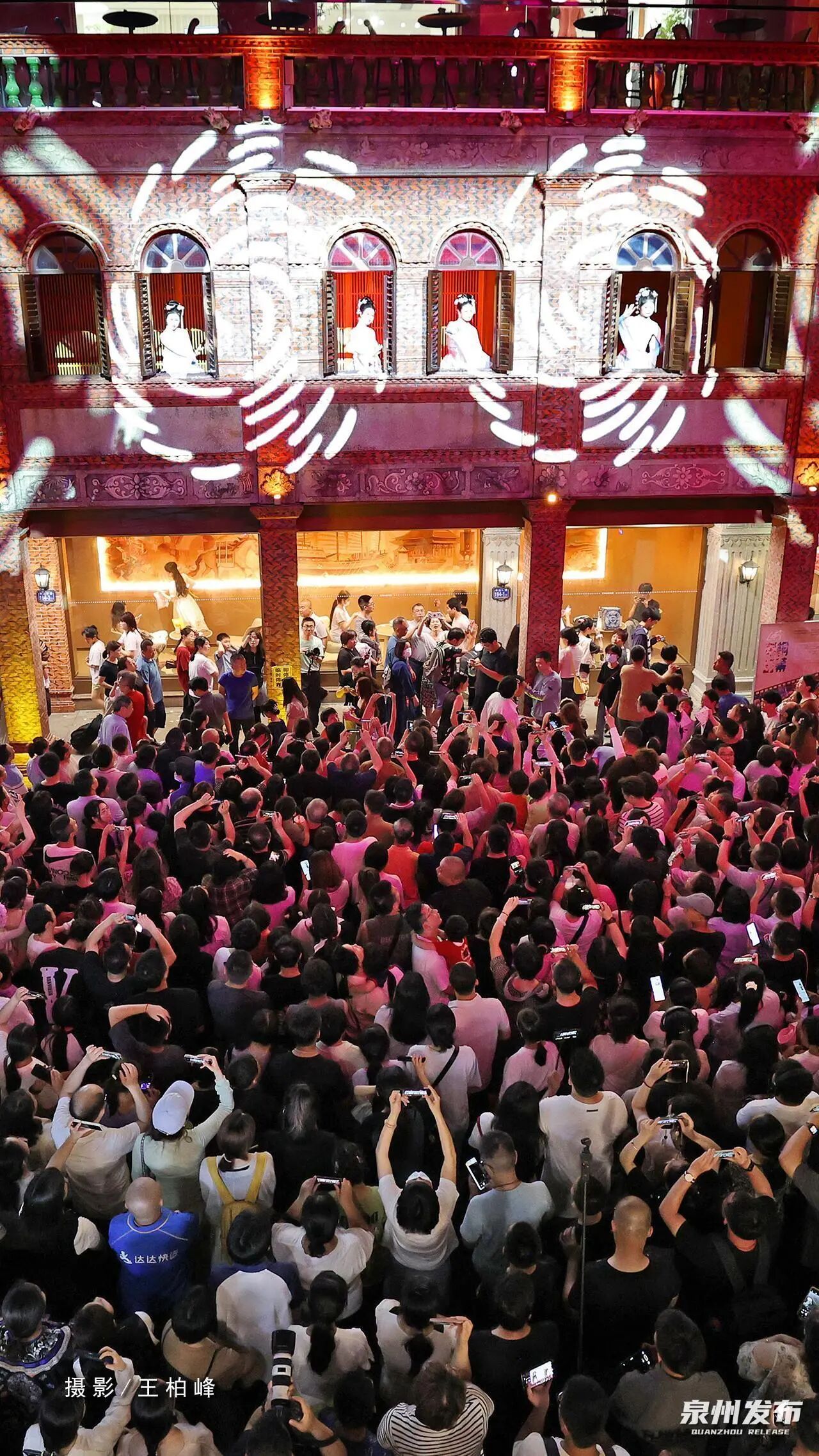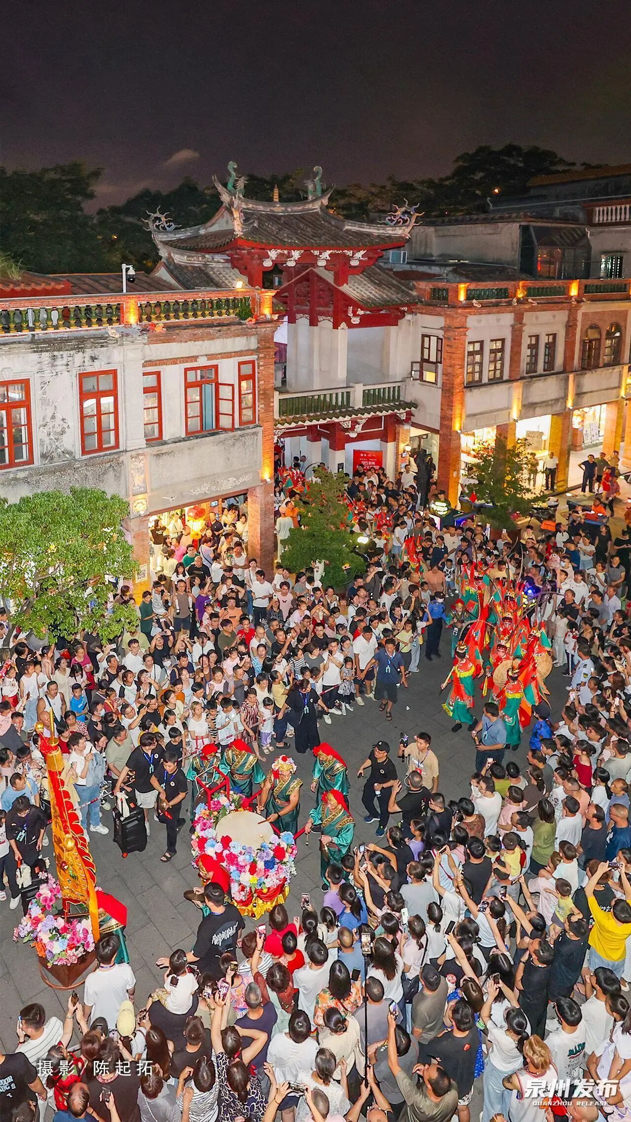 锣声起,商门开?;廊灰恍碌闹猩侥下飞?,人潮涌动。一场仿宋古礼,重现了“涨海声中万国商”的繁华盛景。市舶司前报关声起,提举率仪仗迎宾,万国商船“停泊”于刺桐古港——千年前的泉州繁华,在这一刻的烟火气中鲜活落地,翩然归来。
