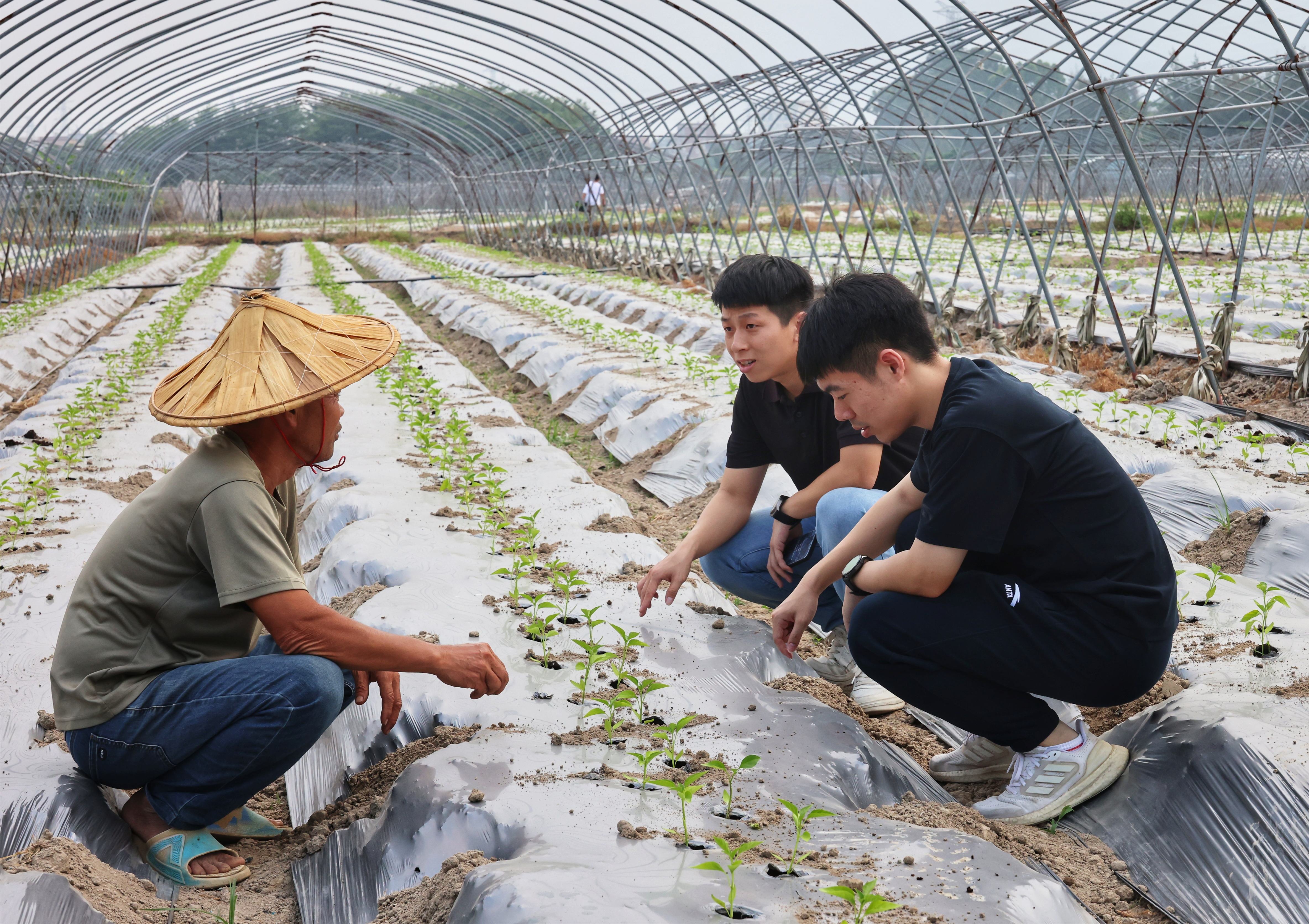厦门市翔安区内厝镇干部在大棚里指导农户科学种植辣椒等经济作物。郑晓东摄